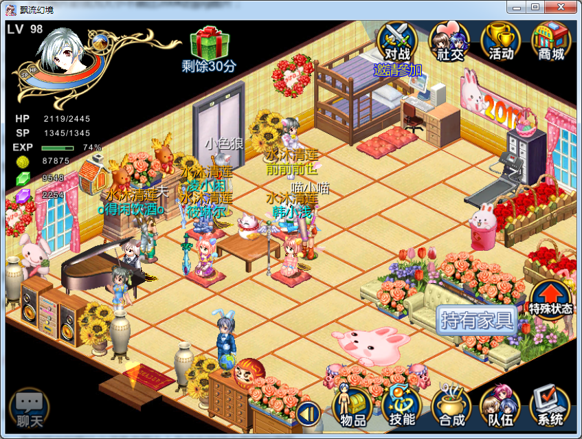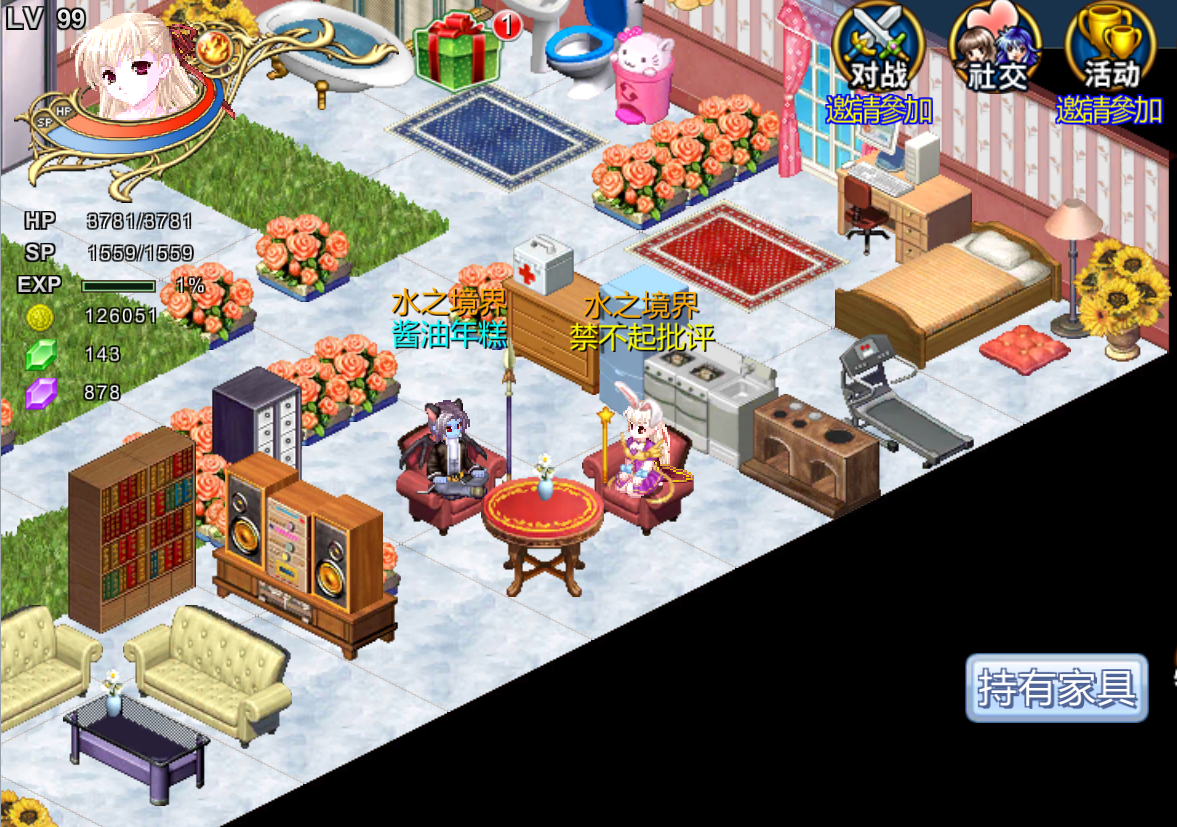 初使装备:发结(防御力+1)、套装(防御力+1)、高跟鞋(防御力+1)、小提琴(防御力+1攻击力+1)