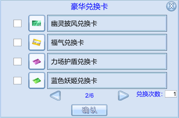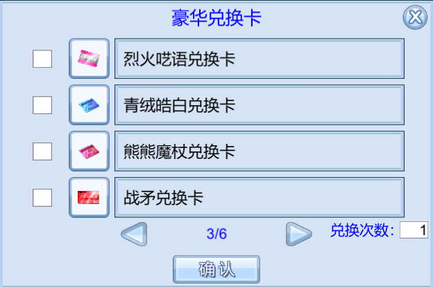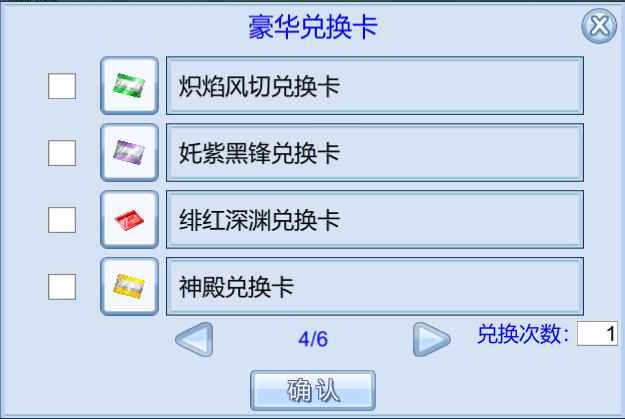 | 40000 | 豪华兑换卡*1(可交易)、星矢*15 | 使用后可自行选择优质兑换卡 |