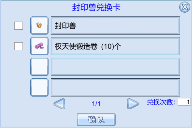 | 40000 | 封印兽兑换卡*1(可交易)、星矢*15 | 使用后可自行选择封印兽或其他优质物品 |