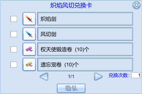 | 20000 | 炽焰风切兑换卡*1(可交易)、星矢*12 | 使用后可自行选择炽焰剑、风切剑或其他优质物品 |