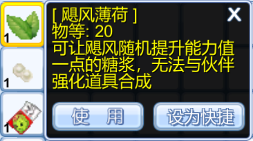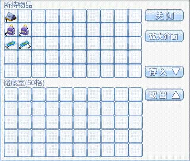 (1)储物室存入道具可自动叠加