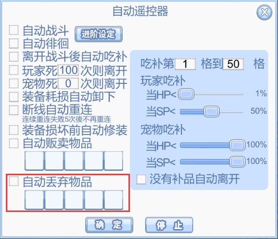 (1)增加遥控器自动丢弃物品功能。加入想要自动丢弃的物品后,选择物品将自动被丢弃(可丢弃部分无法贩卖的物品)