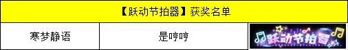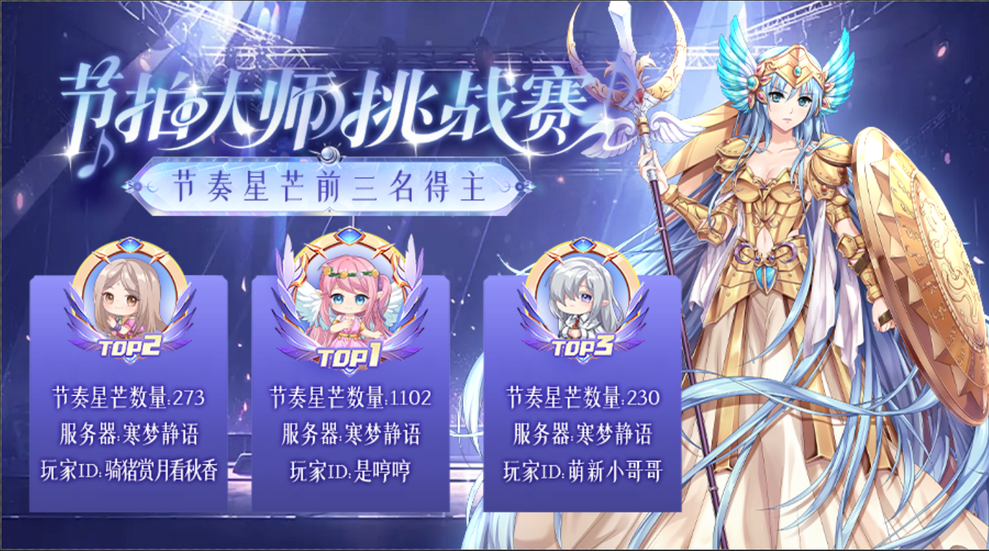 节拍大师挑战赛活动获奖名单已经出来了,感谢小伙伴们的热情参与!现在让我们恭喜以下玩家获奖!