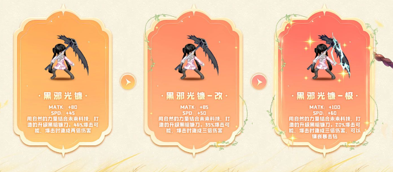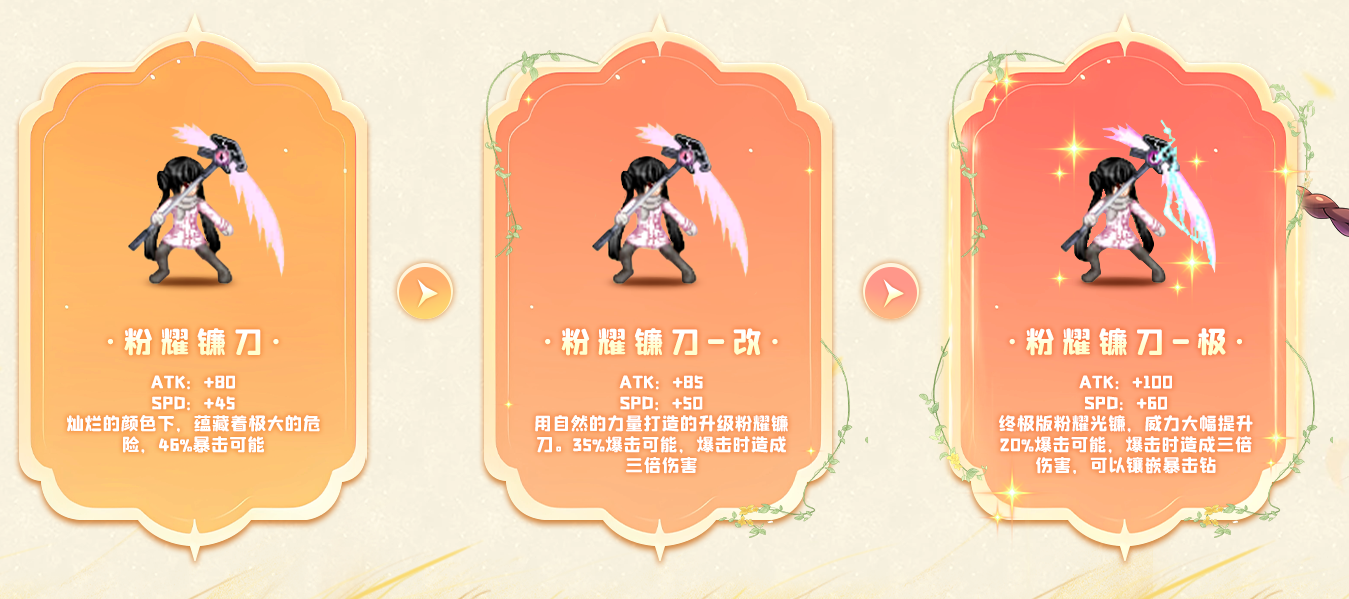 【粉耀镰刀】【黑邪镰刀】【粉耀镰刀-改】【黑邪镰刀-改】【紫魅之剑】【蓝魂之剑】【爱心造型杖-改】