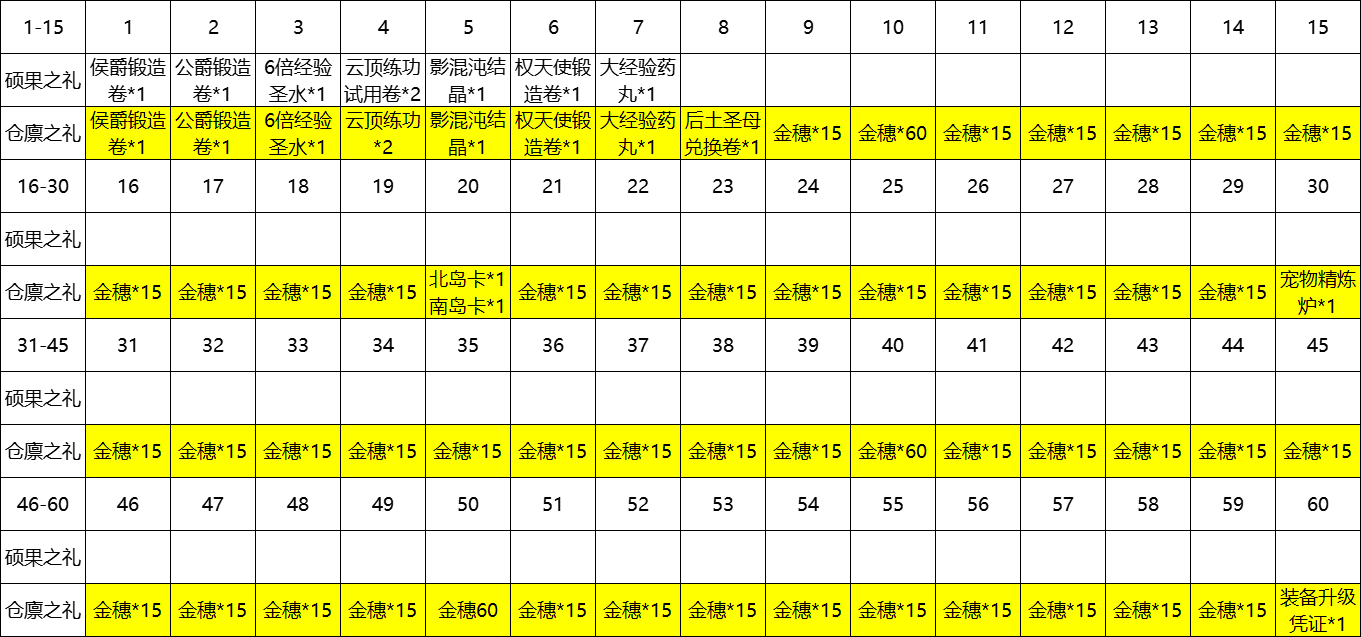 注:【丰收里程】达到60级之后,每升一级将获得【金穗*20】