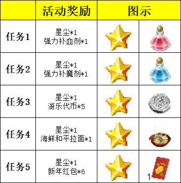 2)活动内容:活动时间内,需收集道具,宝石项链*1、古铜靴*1、椰子盆*1、鲜奶*1、挑战之星*1