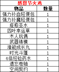 5)活动奖励:【感恩节火鸡】*2(开启后可获得内容如下)