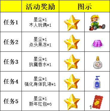 2)活动内容:活动时间内,需收集道具,牛肉*2 、鸡蛋*1、白色黏土*1、保暖厚皮靴*1、挑战之星*1