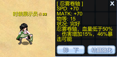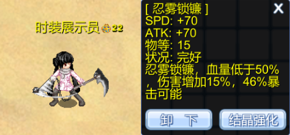 | 60000 | 忍雾兑换卡*1(可交易)、星尘*15 | 使用后可自行选择忍雾锁镰、忍雾卷轴或其他优质物品 |