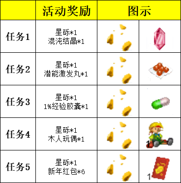 2)活动内容:活动时间内,需收集道具,蔓草*1 、水果蛋糕*1、淡水*1、轻布衣*1、挑战之星*1