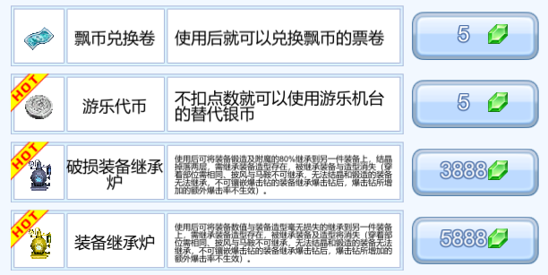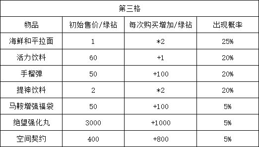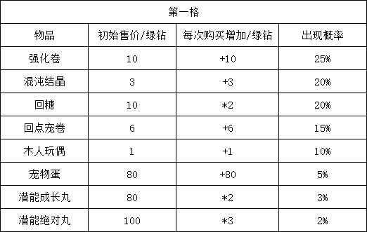 | 消耗绿钻 | 奖品内容 | 物品说明 |
