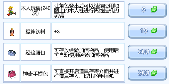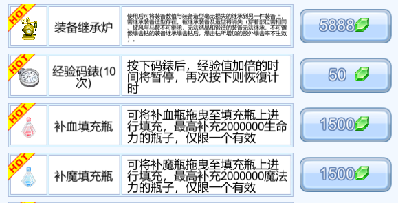 | 400 | 6倍经验圣水*2、星砾*5 | 喝下之后两小时内经验值吸收乘6倍 |