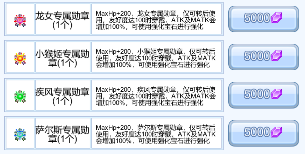 | 6000 | 北岛勇者兑换卡*1(可交易)、爱心强化丸*5、星砾*8 | 使用后可选择回点宠卷*8/遗忘卷轴*3/潜能成长丸*5 |