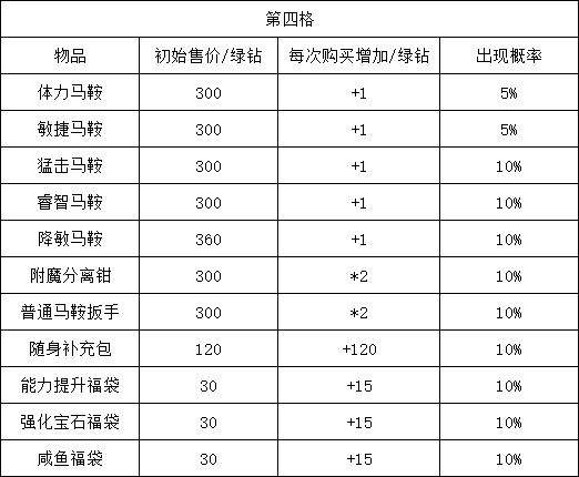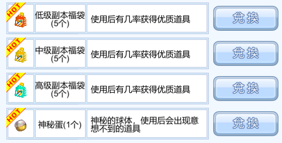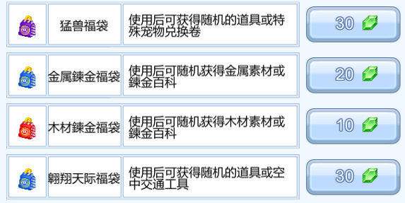 【新伙伴强化福袋】 商城售价50绿钻 每人限量200个 使用后有几率获得强化兑换卡等优质道具 上架区服:炽阳 |