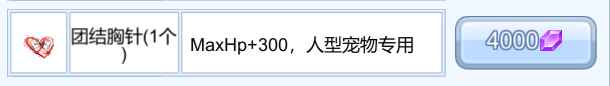 | 6000 | 爱心强化丸*3 | 可以强化宠物装备在身上的爱心胸针,每强化一次额外提升胸针加成幅度 |