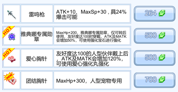 | 3000 | 爱心强化丸*1 | 可以强化宠物装备在身上的爱心胸针,每强化一次额外提升胸针加成幅度 |