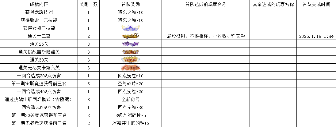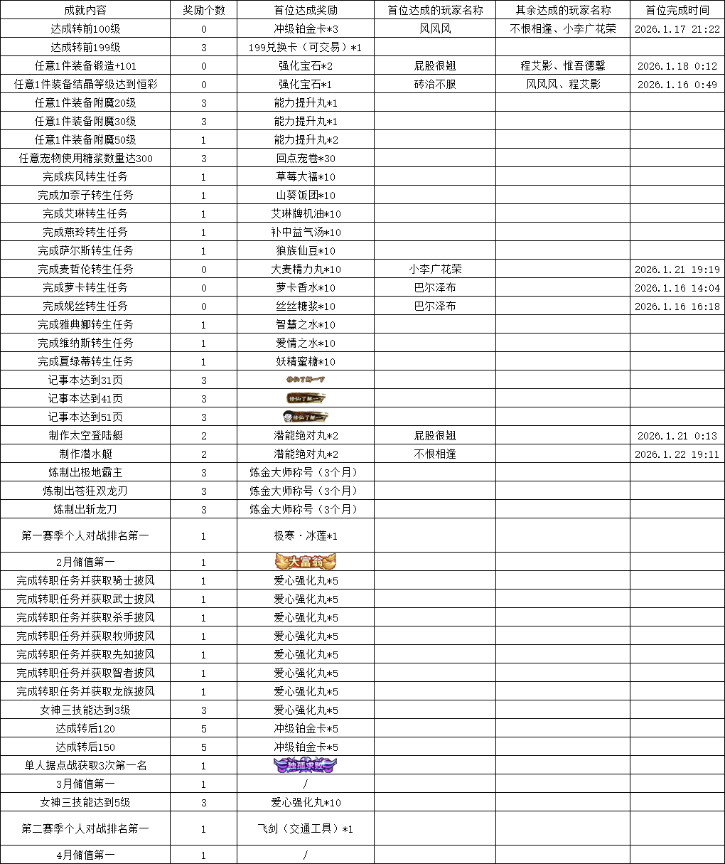 上线网页活动前,本榜单将在每周五进行更新,请小伙伴们注意奖励剩余个数哦!活动详情->成就活动详情