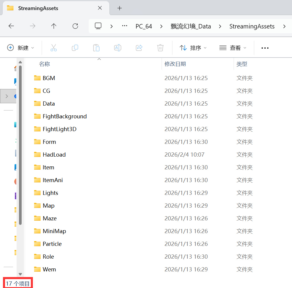 游戏文件夹【飘流幻境_Data\StreamingAssets】