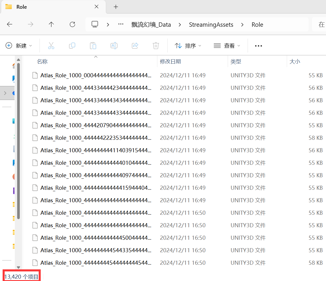 【StreamingAssets\Role】Role文件夹中13420个项目