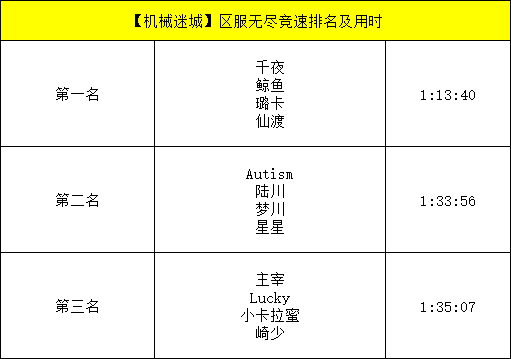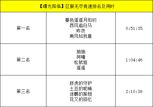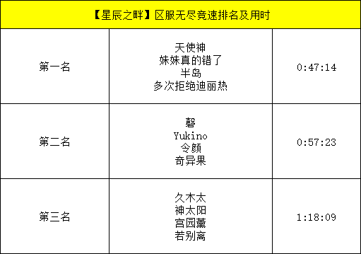 现在让我们一同庆贺本期各区无尽关卡竞速前三名队伍的诞生吧!