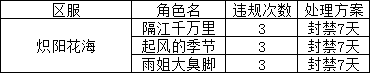 目前我们已对部分被举报玩家进行了行为核实。对于违规次数未满3次的玩家,本次暂不处罚,但相关游戏ID及行为已被记录在案;对于违规次数达到3次及以上的玩家,本次将进行封禁游戏账号7天处理,账号封禁将从本篇公告发出时开始。