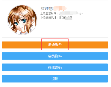 点击进入会员中心(此处可以查询游戏账号是否已成功绑定)
