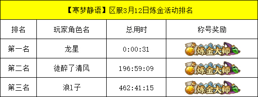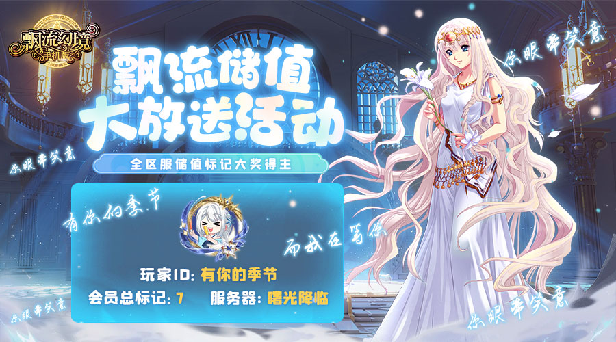 【成为炼金大师吧!】活动及【飘流储值大放送】活动获奖名单已经出来了,感谢小伙伴们的热情参与!现在让我们恭喜以下玩家获奖!