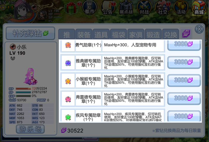回答:在商城处可以通过紫钻、悬赏令、绿钻进行购买,勋章会不定期轮换哟