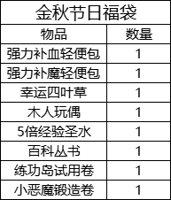 (4)活动奖励:【金秋节日福袋】*1