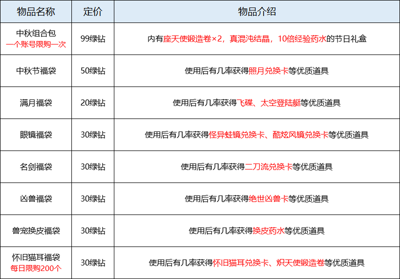 【中秋节福袋】商城售价50绿钻