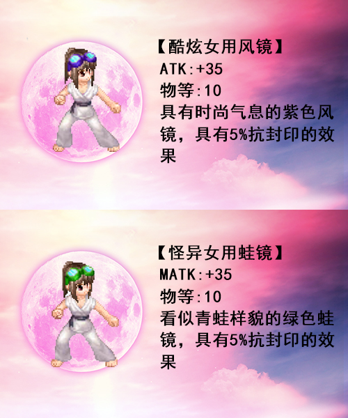 酷炫风镜兑换卡:酷炫男用风镜、酷炫女用风镜